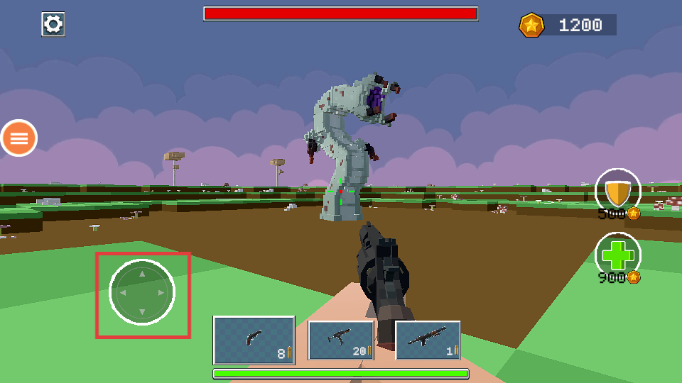 2、通过左侧操纵盘控制角色移动,瞄准前方的巨型怪物,使用武器进行攻击。