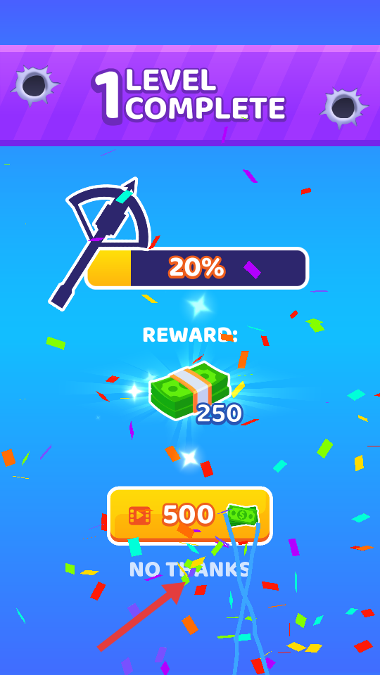 4、关卡完成后,点击【NO,THANKS】,继续后续关卡。