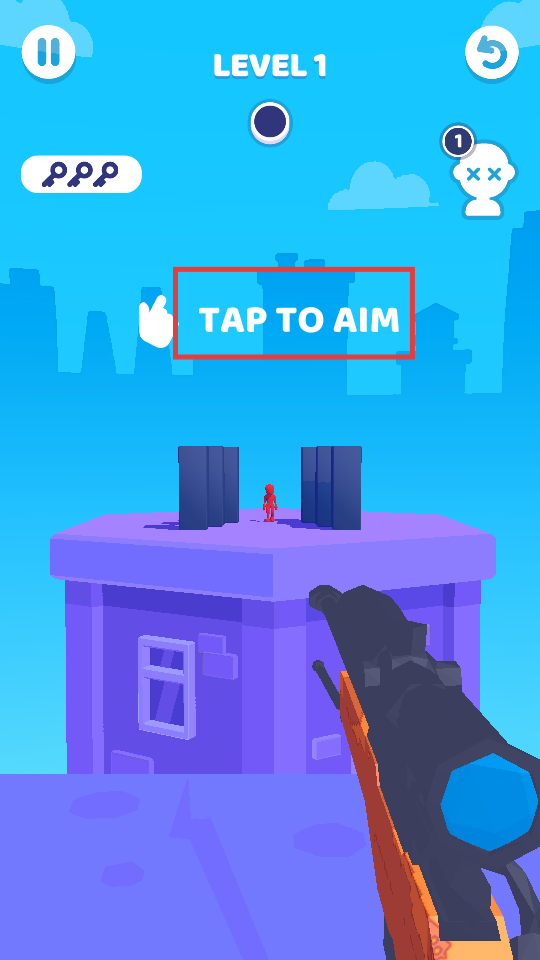 2、在关卡中,根据【TAP-TO-AIM】提示,点击屏幕进行瞄准。