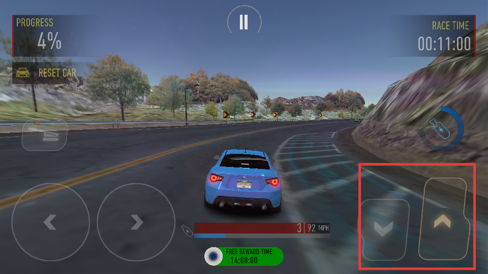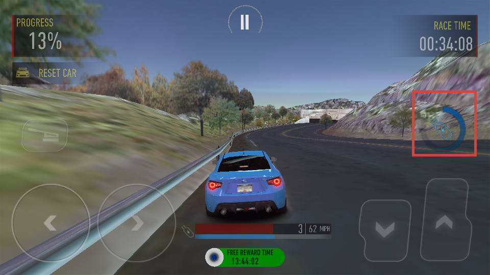 2、在赛道行驶时,使用右侧踏板控制车速,推进比赛,留意进度和比赛时间。
