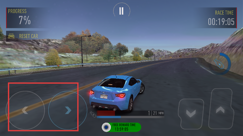 3、通过左侧的左右按钮控制车辆转向,根据赛道弯道调整行驶方向。