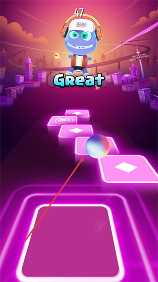 1、基本操作方法:在球体接触带有箭头的瓷砖时迅速点击屏幕,精准配合曲目节拍可以形成连跳获得得分倍数提升。