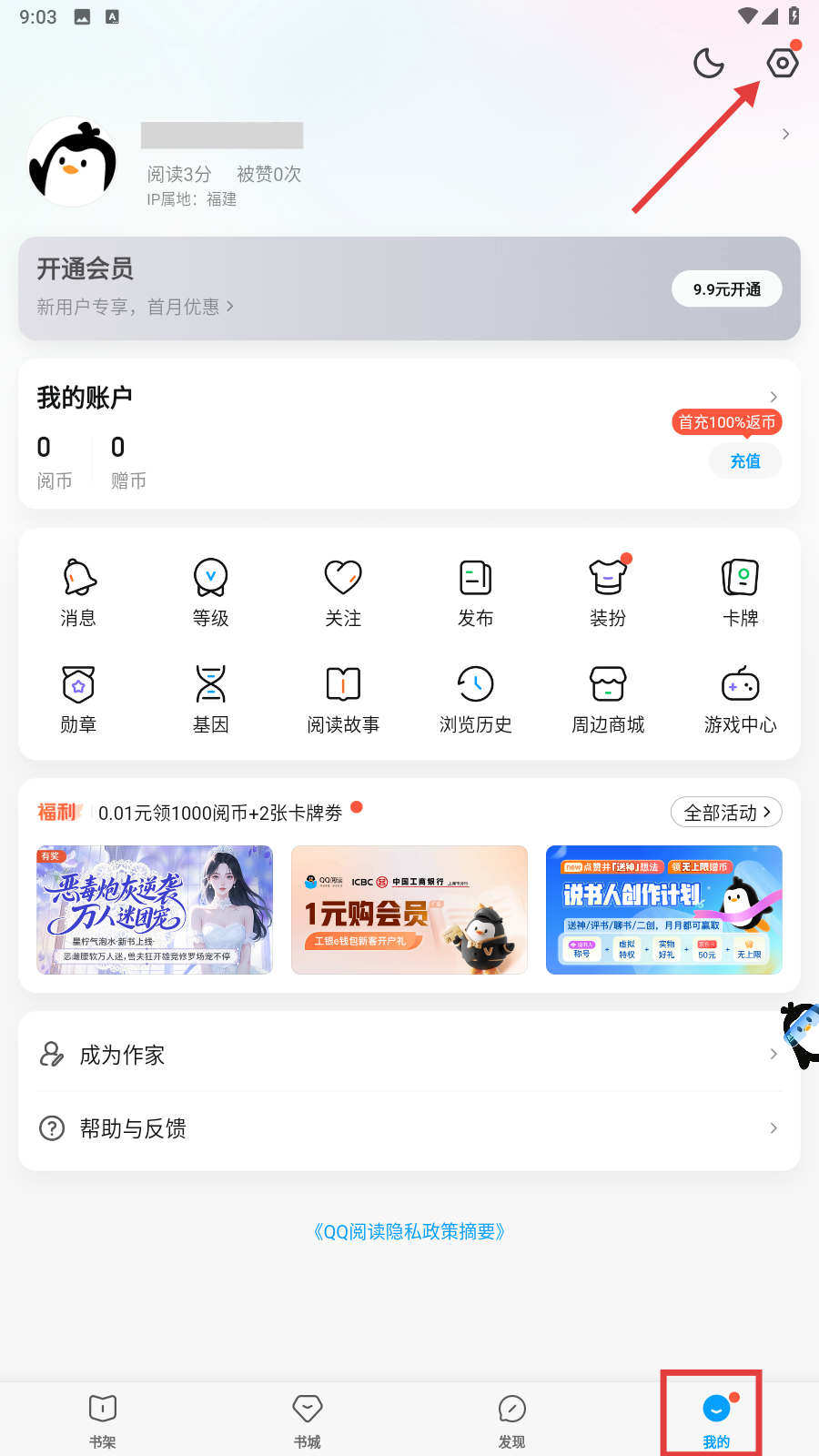 1、进入【我的】页面后,点击右上角的【设置】图标,即可进入设置界面啦。