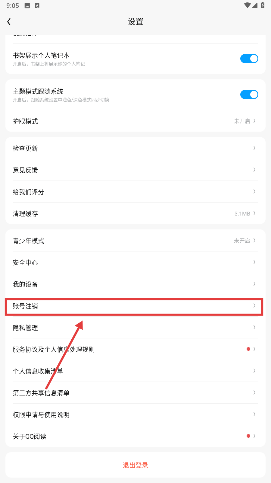 2、在设置界面里,找到【账号注销】选项并点击,就能进入账号注销相关页面了。