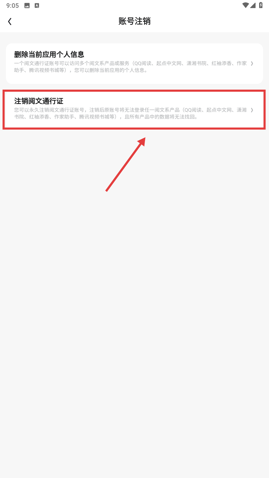 3、进入账号注销页面后,点击【注销阅文通行证】,继续后续操作哦。