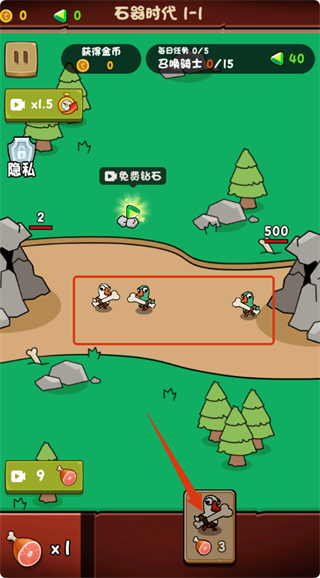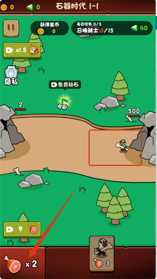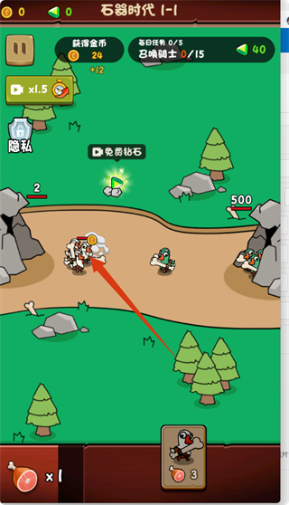 3、当敌人数量增多时,点击下方的单位图标,消耗火腿召唤更多单位,增强战力抵御敌人。